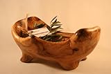 Coupe à fruits en bois d'olivier Forme ovale Environ 30 cm de long Photo non contractuelle, nos coupes à fruits étant uniques. Avec ou sans poignée suivant les arrivages. Fabrication artisanale