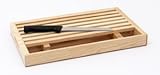Planche à pain Bois blanc, 40 x 24 cm, couteau à pain, manche noir Bois blanc, Grille amovible, Dimensions : 40 x 24 cm, Epaisseur : 4 cm, Avec couteau à pain, manche noir